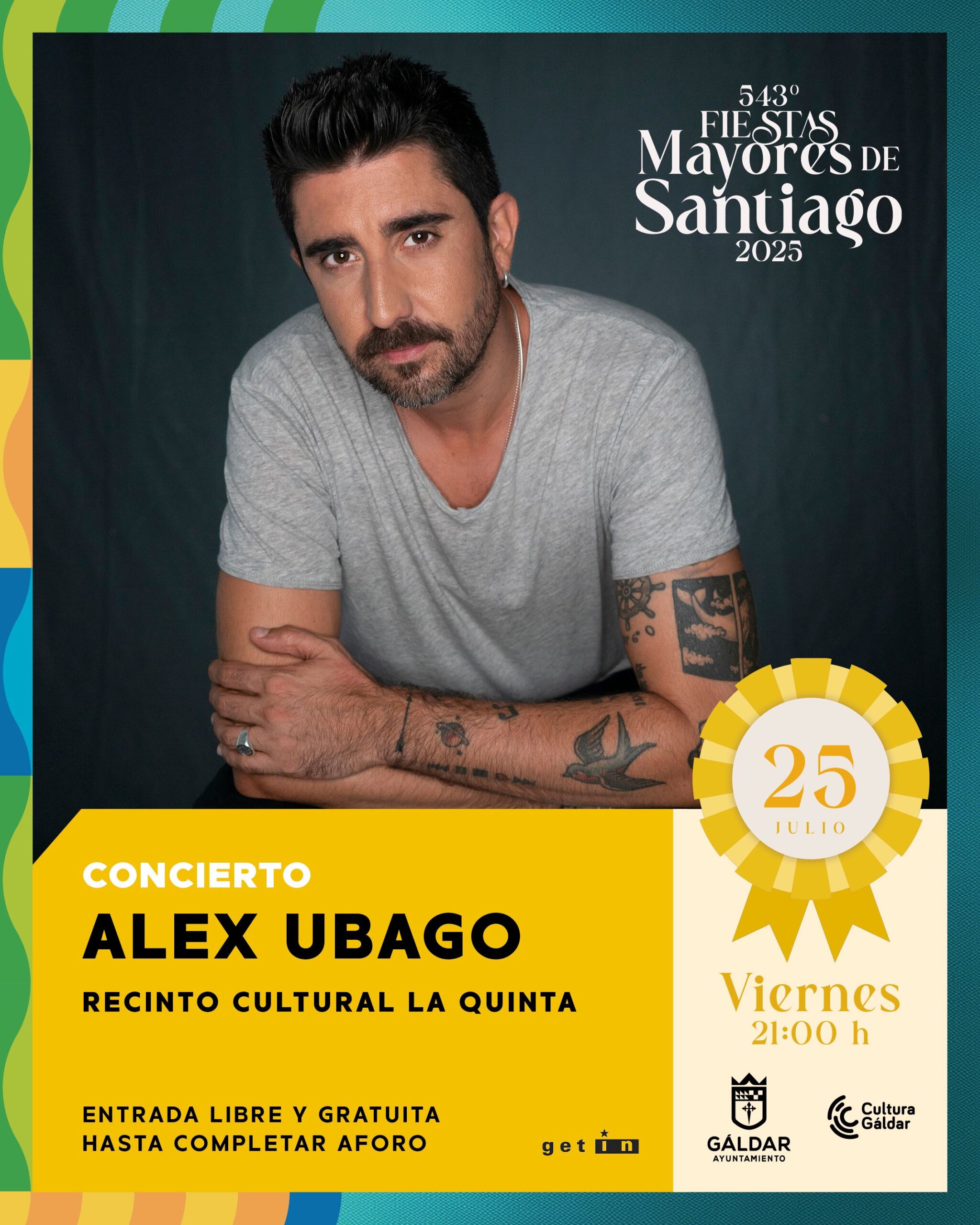 Las Fiestas Mayores de Santiago 2025 de Gáldar llegan cargadas de grandes citas. Álex Ubago, el inolvidable cantautor español, ofrecerá un concierto el próximo 25 de julio a partir de las 21:00 horas en el Recinto Cultural La Quinta. Un concierto que promete toda la emoción de algunas de las canciones más románticas de nuestro país, con entrada gratuita hasta completar aforo.