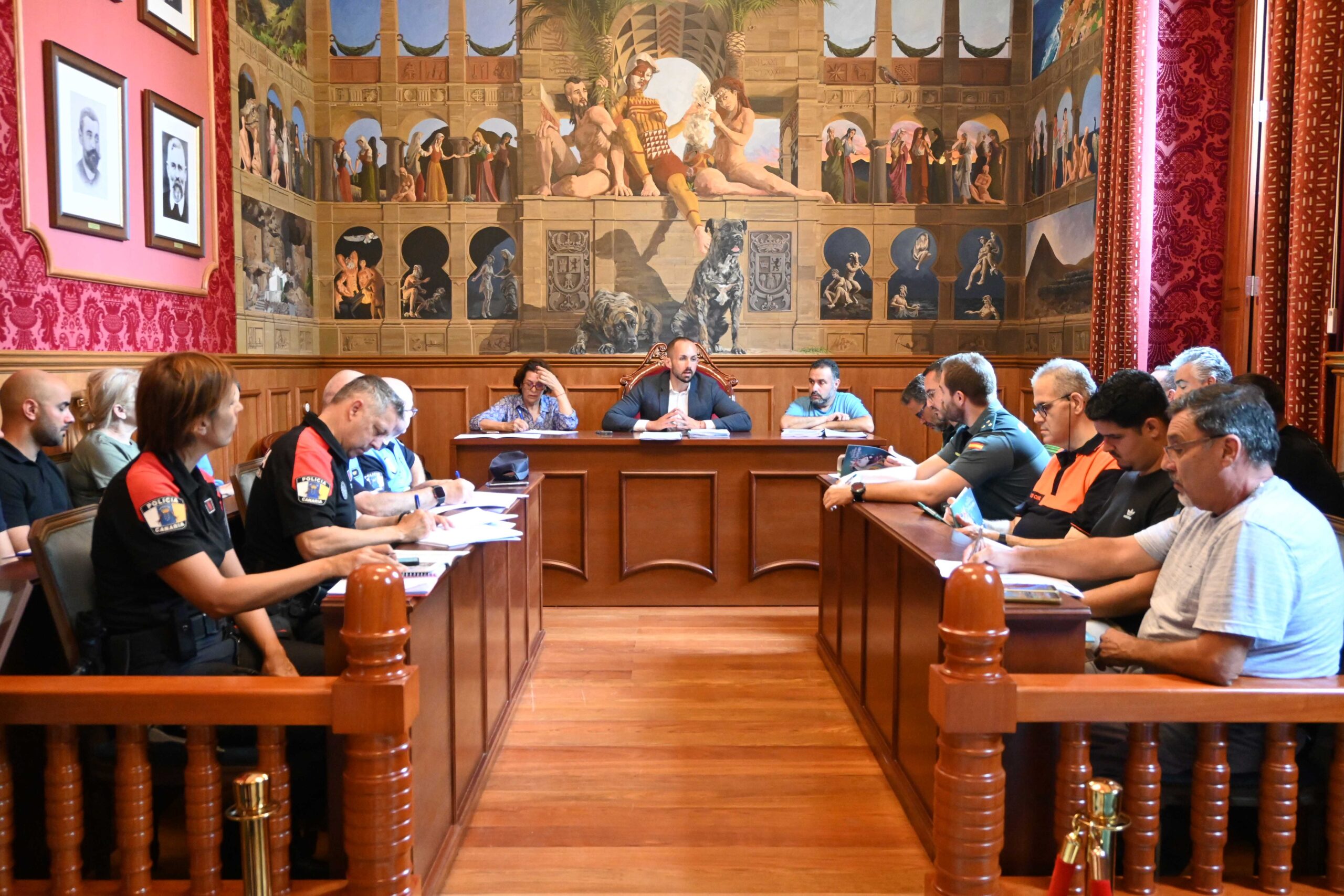 La Junta de Seguridad se celebró en el Salón de Plenos de las Casas Consistoriales y estuvo presidida por el primer teniente de alcalde del municipio y concejal de Cultura y Fiestas, Julio Mateo Castillo junto a los concejales de Tráfico, Pedro Mendoza, y Recogida de Residuos, Antonia Moreno; el asesor de Seguridad, Jesús González; el coordinador de Cultura, Gustavo Moreno; la secretaria municipal, Candelaria Guerra; los técnicos municipales redactores del plan de seguridad y representantes de los Cuerpos de Policía Local, Protección Civil, Policía Canaria, Guardia Civil, el Consorcio de Emergencia, el servicio de ambulancias García Tacoronte y el servicio de Recogida de Residuos y Parques y Jardines.