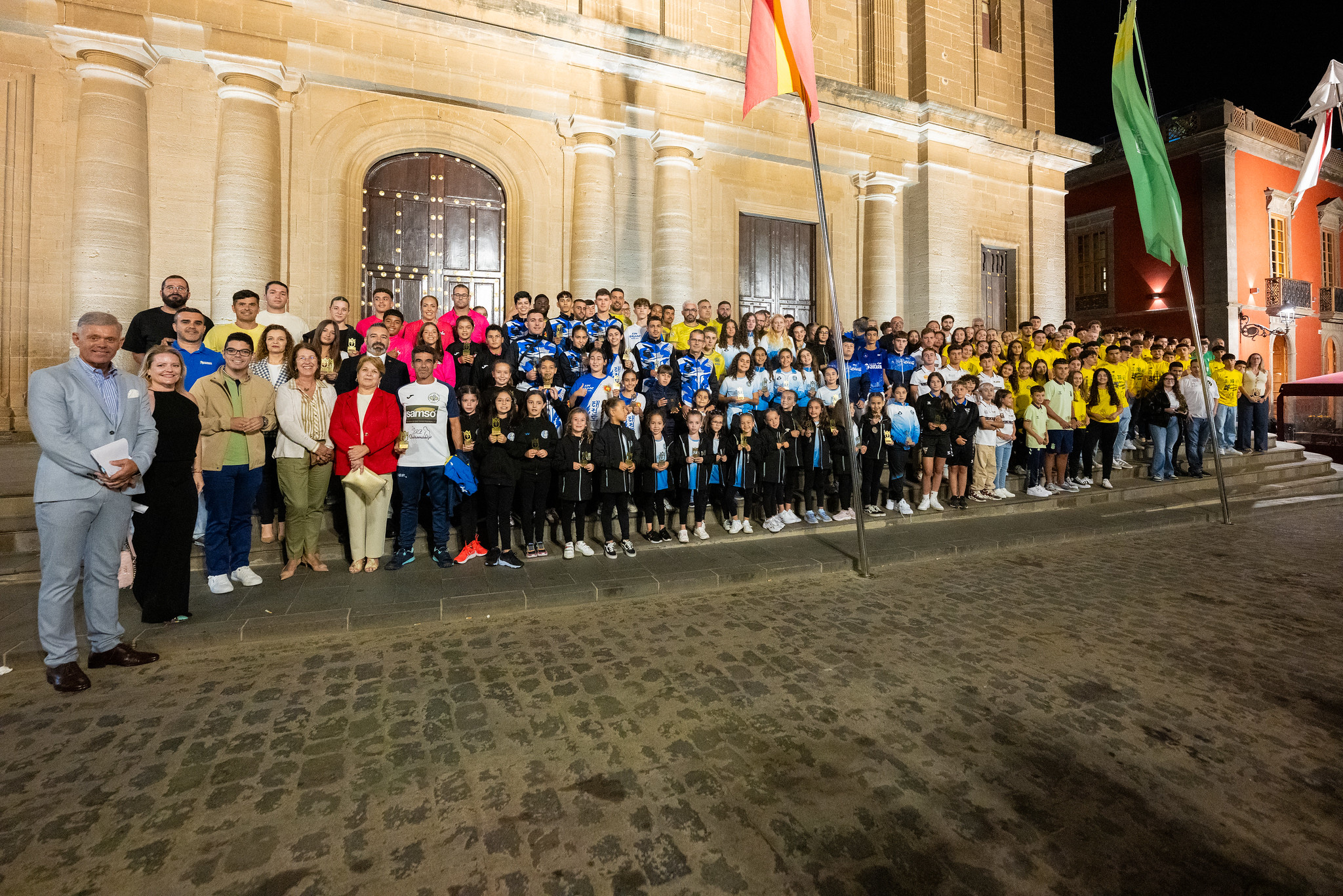 Todo comenzó de la forma más emotiva ya que los primeros en subir al escenario fueron los padres de Zebensuí Ramos González, Medalla de Oro de la Ciudad fallecido el pasado 26 de junio, que recogieron la distinción que debía recoger su hijo por los logros cosechados con Las Palmas C, equipo con el que ganó la liga preferente de fútbol, consiguiendo el ascenso a Tercera RFEF. En medio de una emotiva ovación, también recibieron su distinción sus compañeros de equipo Maciot Santana Viera y Airam Díaz García.