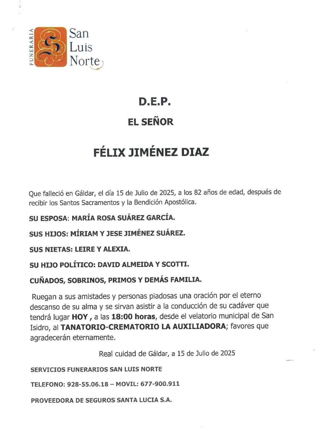 galdaraldia.es | Necrológica | 16 julio 2025 La Policía Local de Gáldar informa de cambios circulatorios este sábado con motivo de la Romería Ofrenda Cientos de jóvenes disfrutan de una mágica tarde infantil en las Fiestas Mayores de Santiago