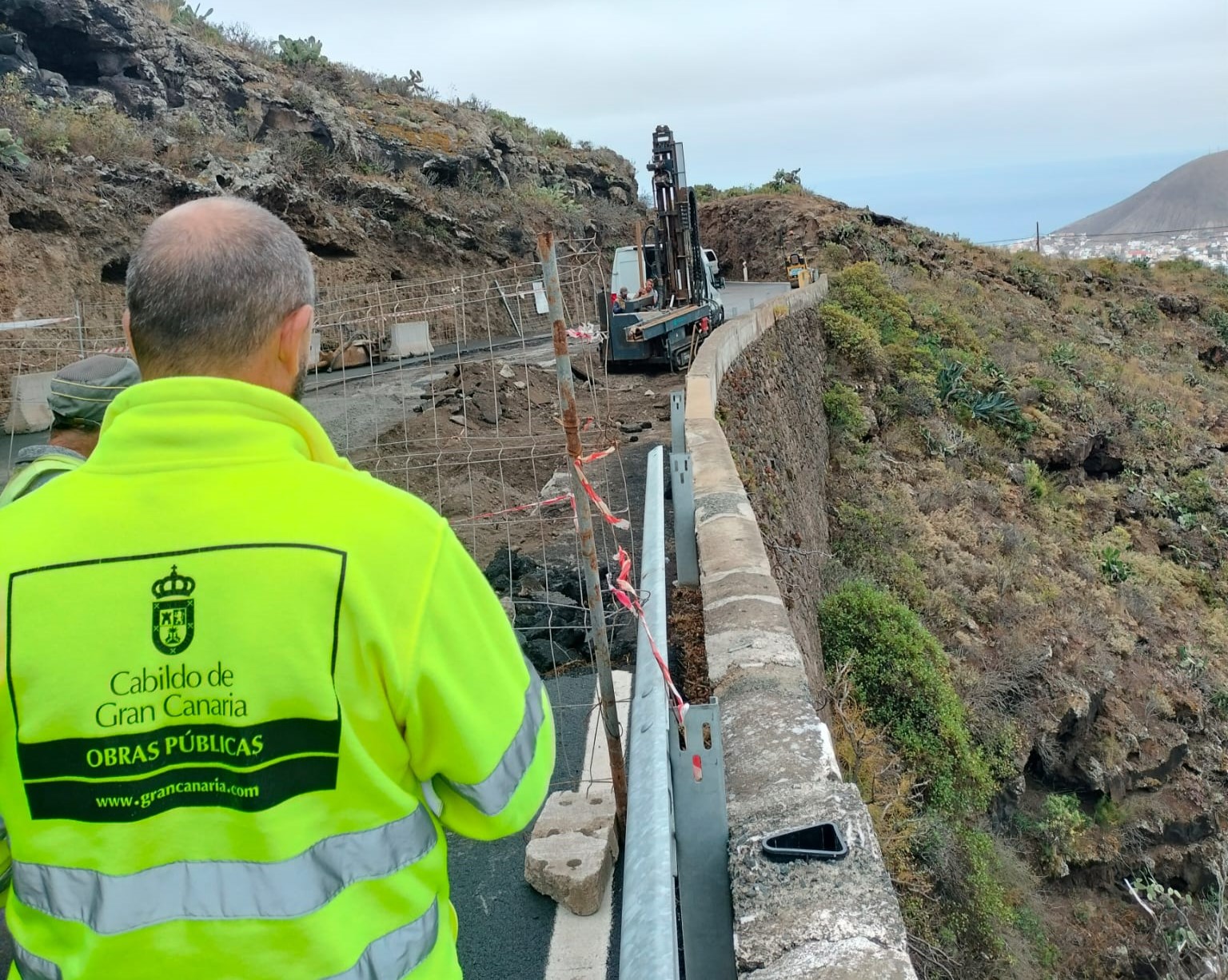 Obras Públicas inició hace un mes los trabajos de las obras para reconstruir tres tramos de muros en la carretera de subida a Hoya Pineda (GC-220). Se trata de sustituir los viejos muros que sostienen la carretera junto al barranco, de más de 70 años y que presentaban un deterioro importante, por otros nuevos más seguros y eficaces.