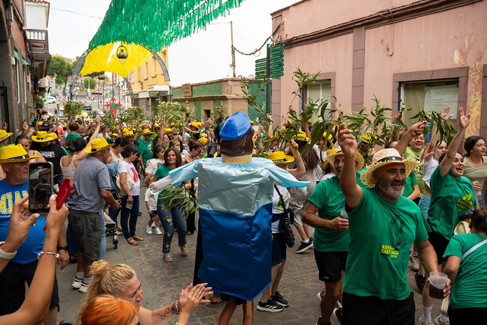 Vitamina Band y la Banda de Agaete han acompañado durante todo el recorrido poniendo el ritmo y la fiesta en la que no han faltado los tradicionales papagüevos. Se trata sin duda de uno de los actos más esperados y multitudinarios del programa de las 543ª Fiestas Mayores de Santiago, que ya aparecía en la documentación de hace 70 años y que en la próxima edición cumplirá el décimo aniversario de su recuperación.