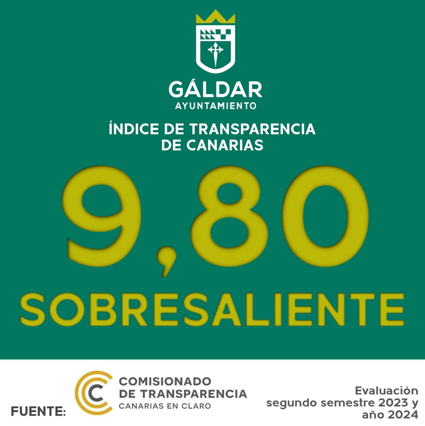 A través de esta valoración el Comisionado de Transparencia y Acceso a la Información Pública de Canarias, dependiente del parlamento autonómico, examina desde el año 2016 el cumplimiento de la “publicidad activa” del portal de transparencia municipal. Desde la evaluación del año 2021 el Ayuntamiento de Gáldar se ha mantenido en el sobresaliente.