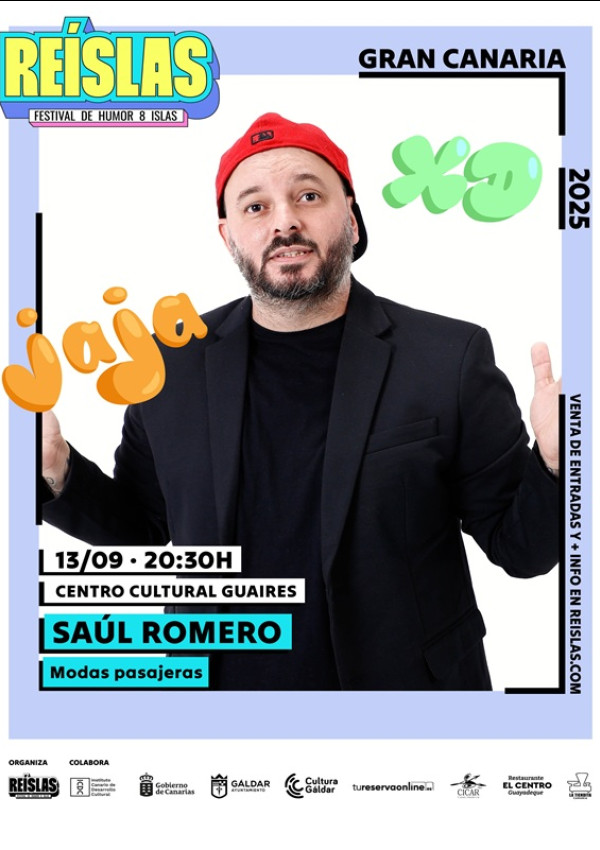 El próximo sábado 13 de septiembre a las 20:30 horas el Centro Cultural Guaires acogerá el espectáculo ‘Modas pasajeras’ del cómico Saúl Romero. Esta función está impulsada por la Concejalía de Cultura y Fiestas del Ayuntamiento de Gáldar, dirigida por Julio Mateo Castillo. Las localidades ya pueden adquirirse a través del portal entradas.galdar.es.