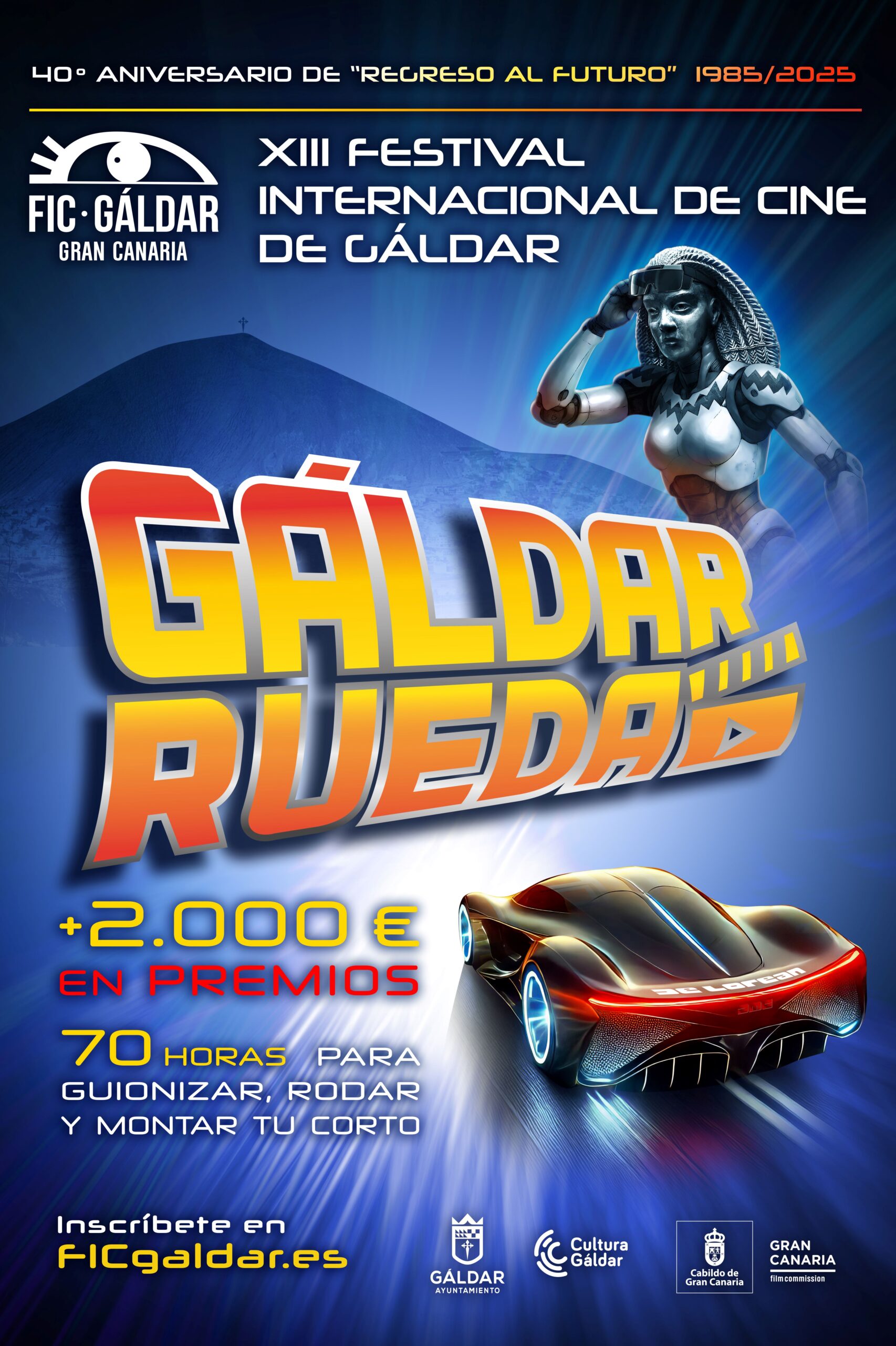 En esta ocasión “Gáldar Rueda” bebe de la propia retrospectiva del Festival, el universo de la ciencia ficción, y cartel y temática rinden homenaje a la saga “Regreso al futuro” en su 40º aniversario. En palabras del primer teniente de alcalde y concejal de Cultura del Ayuntamiento de Gáldar, Julio Mateo Castillo, “para Gáldar este certamen de rodaje exprés, una de las joyas del FIC, adquiere gran importancia en tanto en cuanto cada uno de los cortos rodados en las calles de la ciudad se convierte en un verdadero escaparate para Gáldar, cuya imagen se exporta al mundo a través de su proyección en otros festivales y redes sociales.”