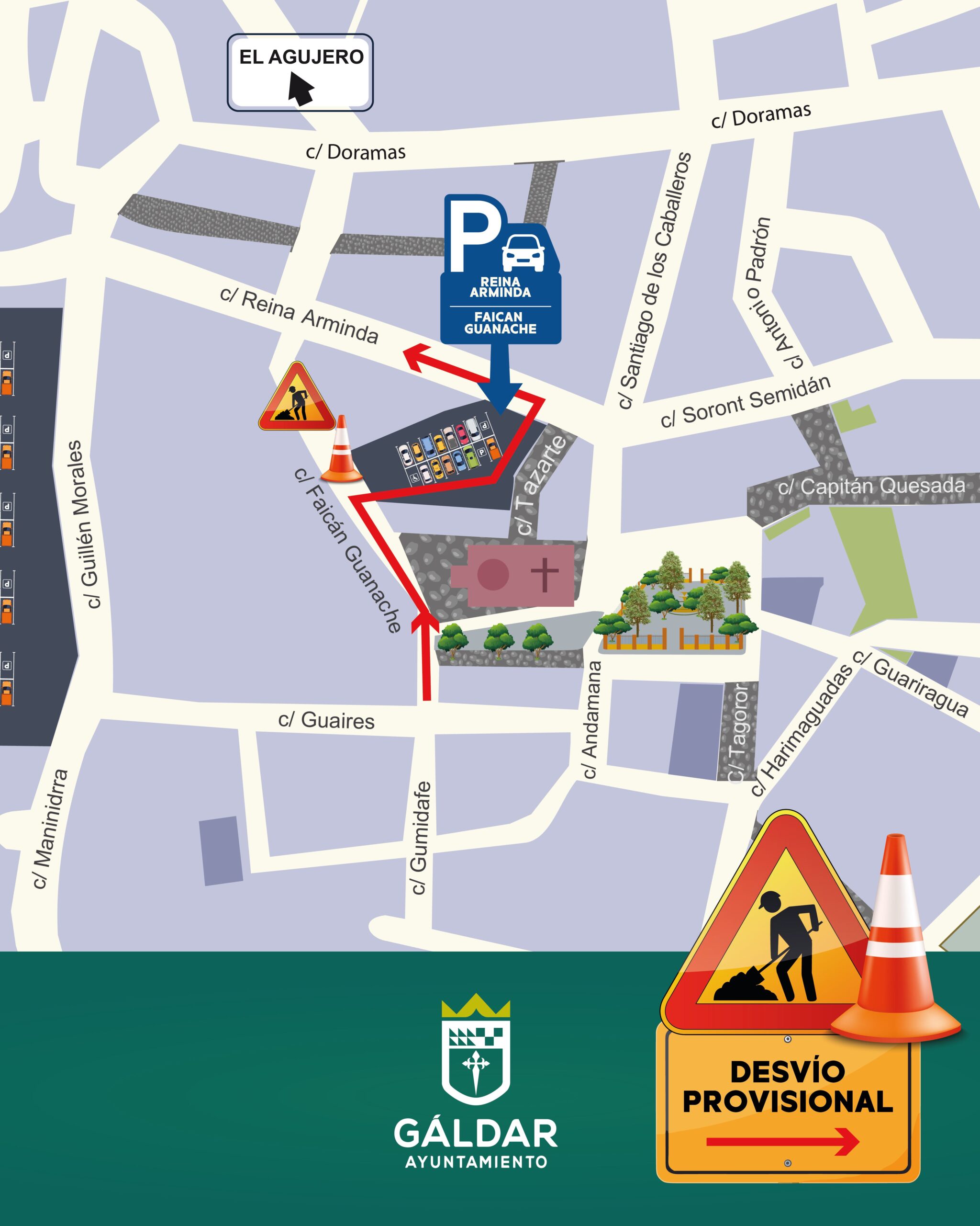 Por este motivo, y hasta el final de la primera fase de los trabajos, se desviará el tráfico ligero desde la calle Faicán Guanache hacia la calle Reina Arminda a través de los dos aparcamientos, que han sido conectados para el desarrollo de esta obra. Mientras, para el tráfico pesado se recomienda el acceso al caso urbano a través de la Plaza del Cristo.