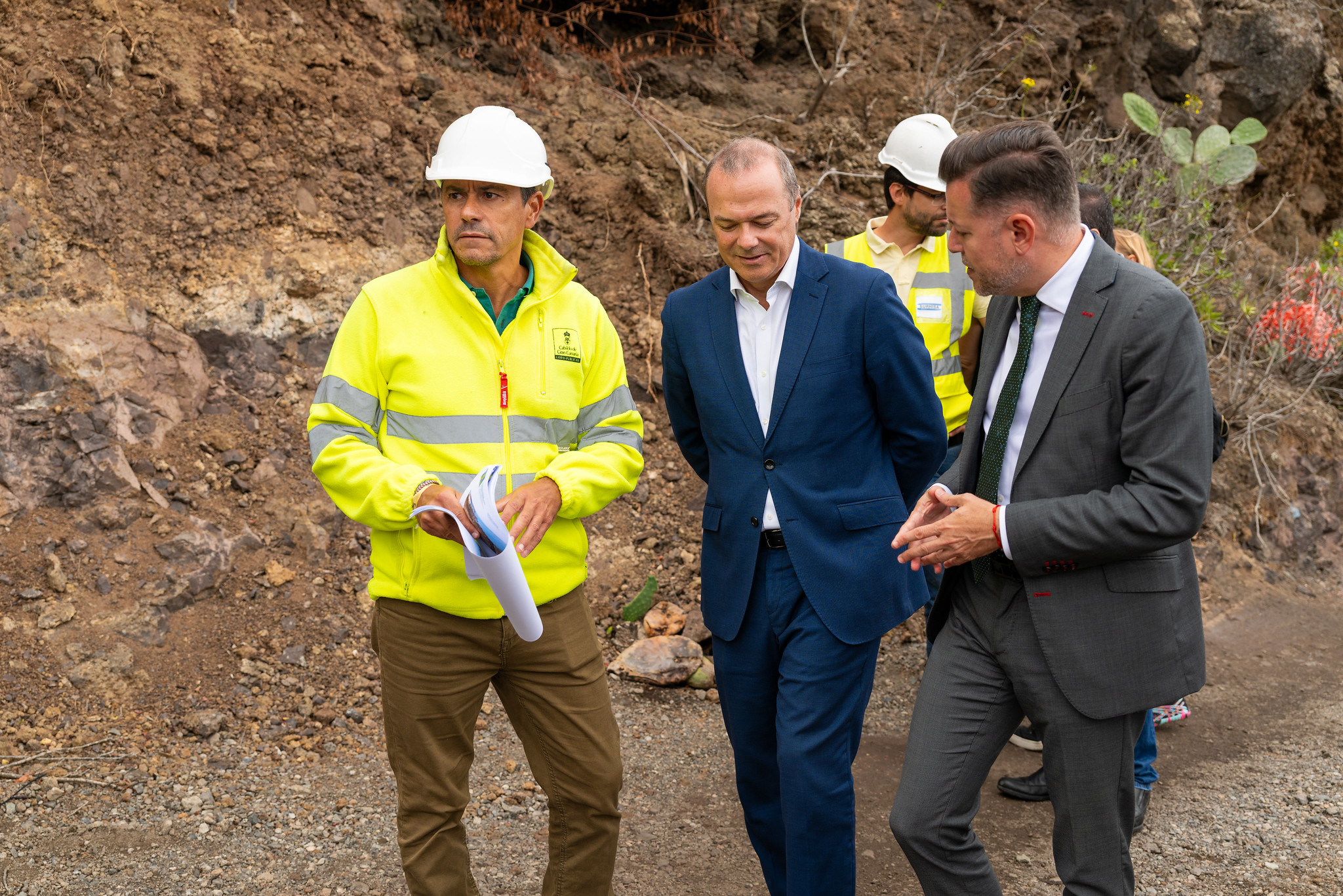 El vicepresidente del Cabildo de Gran Canaria y consejero de Obras Públicas e Infraestructuras, Arquitectura y Vivienda, Augusto Hidalgo, junto al alcalde de Gáldar, Teodoro Sosa, han supervisado hoy las obras para reconstruir tres tramos de muros en la carretera de subida a Hoya Pineda (GC-220), en el término municipal de Gáldar, una de cuyas dos fases está previsto que finalice a finales de octubre o principios de noviembre. La segunda fase se iniciará en las próximas semanas tras implantar un nuevo sistema constructivo para los muros que permitirán mantener la carretera en uso la mayor parte del tiempo mientras se ejecutan las obras.