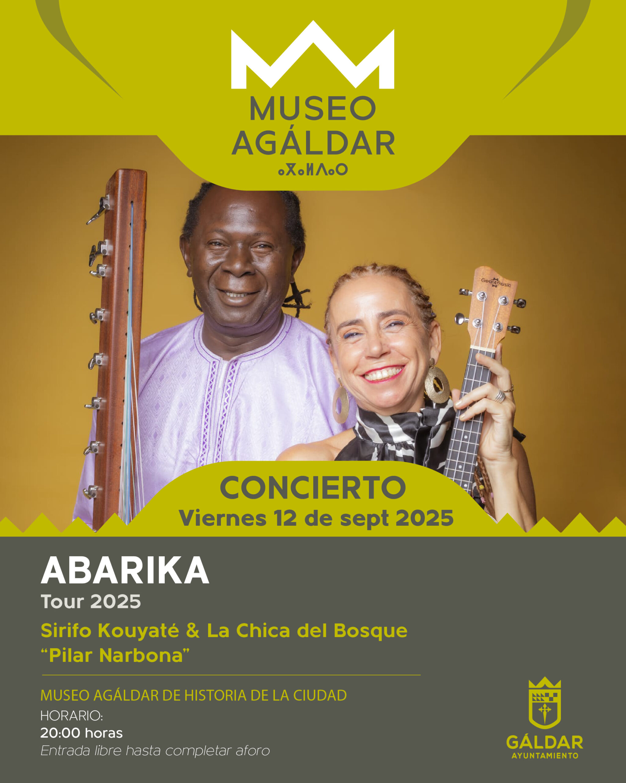El próximo viernes 12 de septiembre, a las 20:00 horas, el Museo Agáldar de Historia de la Ciudad será escenario del concierto ‘Abarika’, un espectáculo que propone un viaje sonoro entre África Occidental y Andalucía, a cargo de los artistas Sirifo Kouyaté y Pilar Narbona, conocida como La Chica del Bosque.
