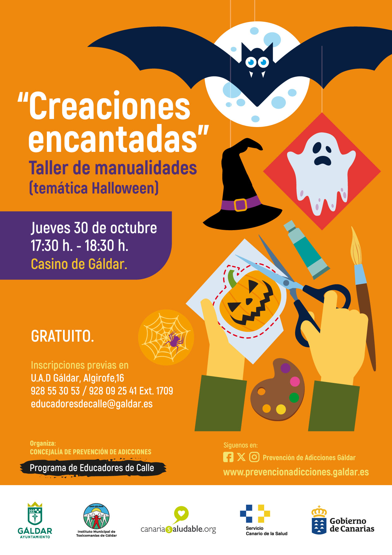 El programa ‘Educadores de Calle’, perteneciente a la Concejalía de Prevención de Adicciones del Ayuntamiento de Gáldar, que dirige Nuria Esther Vega Valencia, presenta una actividad especial con motivo de Halloween: “Creaciones encantadas”, una propuesta gratuita para disfrutar de una tarde creativa y de convivencia.