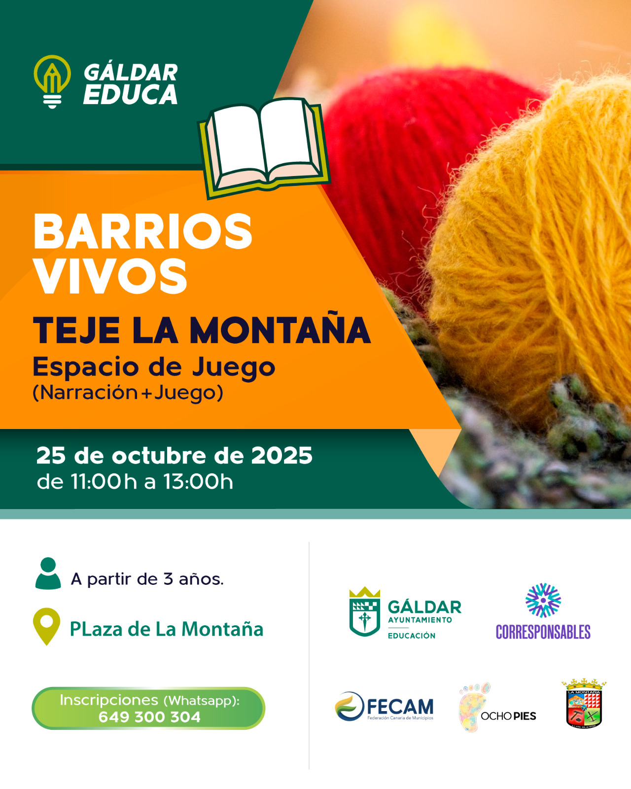 ‘Teje La Montaña’ es una propuesta para toda la familia, a partir de los 3 años, donde tejer, jugar y contar forman parte del mismo lugar. Las inscripciones pueden realizarse a través de WhatsApp en el número 649 300 304.