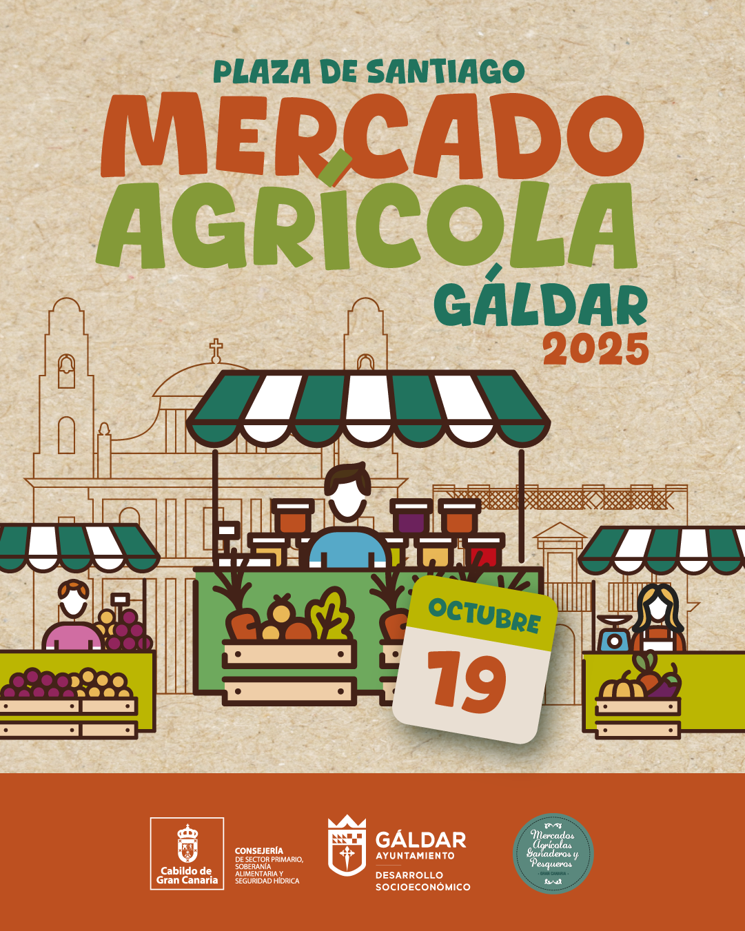 La Plaza de Santiago será este domingo 19 de octubre el escenario del I Mercado Agrícola de Gáldar, una iniciativa impulsada por la Concejalía de Desarrollo Socioeconómico del Ayuntamiento de Gáldar, dirigida por Tine Martín Ojeda. Este evento se enmarca dentro del programa insular de Mercados Agrícolas, Ganaderos y Pesqueros de Gran Canaria, presidido por Mari Carmen Pérez Castellano, y cuenta con la colaboración de la Consejería de Sector Primario, Soberanía Alimentaria y Seguridad Hídrica del Cabildo de Gran Canaria.