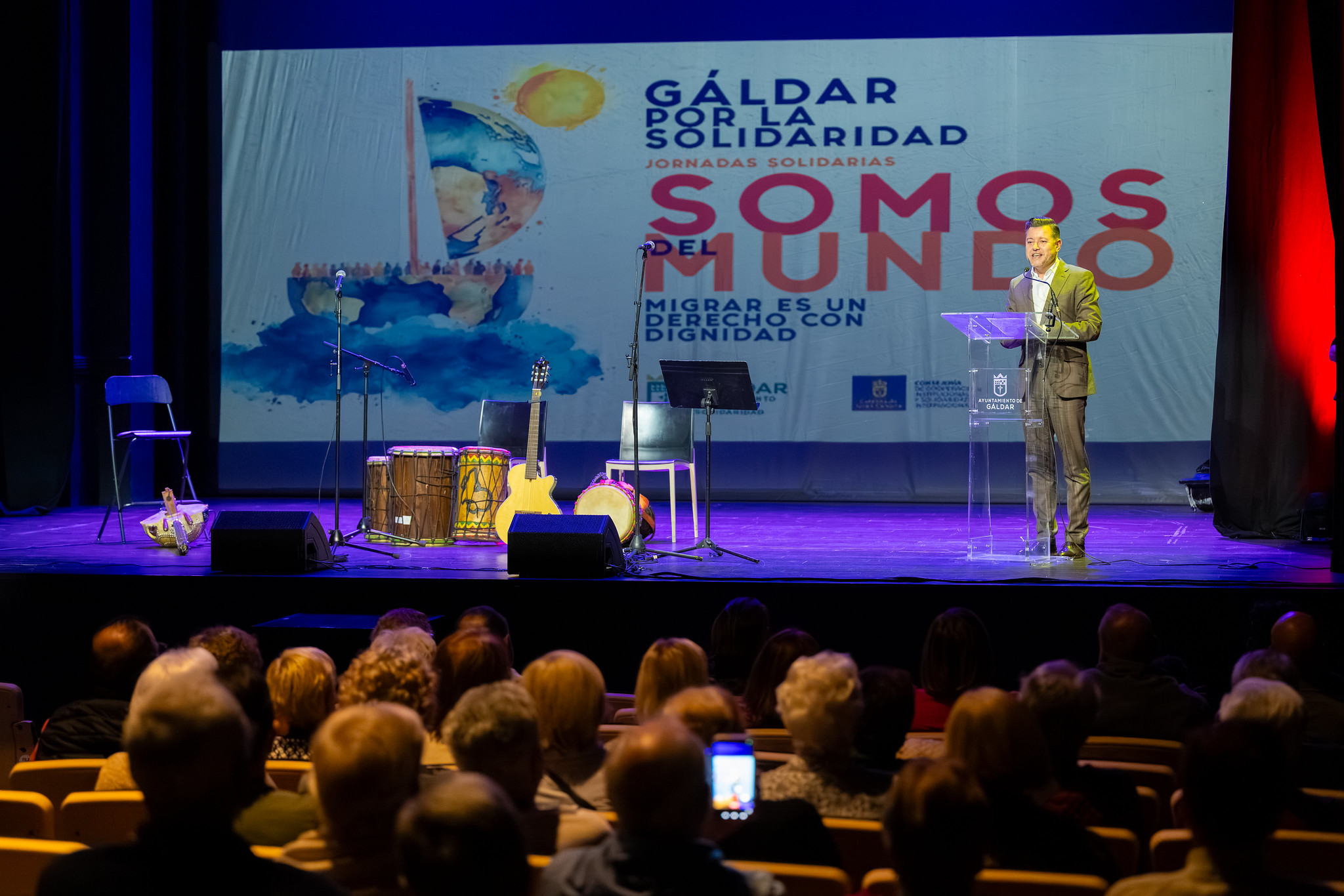 Bajo el lema ‘Somos del Mundo: migrar, un derecho con dignidad’, esta edición ha profundizado en la realidad socioeconómica y migratoria de Guinea Conakry, visibilizando las causas estructurales de la movilidad humana y reivindicando el derecho universal a migrar con seguridad y respeto. El acto contó con la presencia del alcalde de Gáldar, Teodoro Sosa Monzón, y con las intervenciones artísticas y testimoniales de Naby Zana Camara, músico y activista originario de Guinea Conakry, y del artista canario Yeray Rodríguez, cuya obra fusiona poesía, música y compromiso por los derechos humanos.