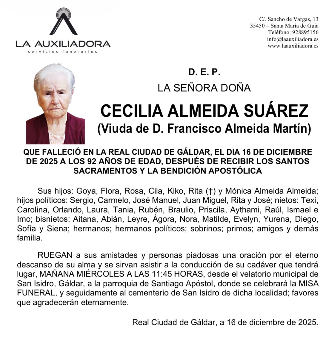 galdaraldia.es | Necrológica | 16 diciembre 2025 Nuria Fergó encenderá la Navidad en Gáldar con un concierto inolvidable en la Plaza de Santiago D.E.P. Dña. Montserrat Morera Santana