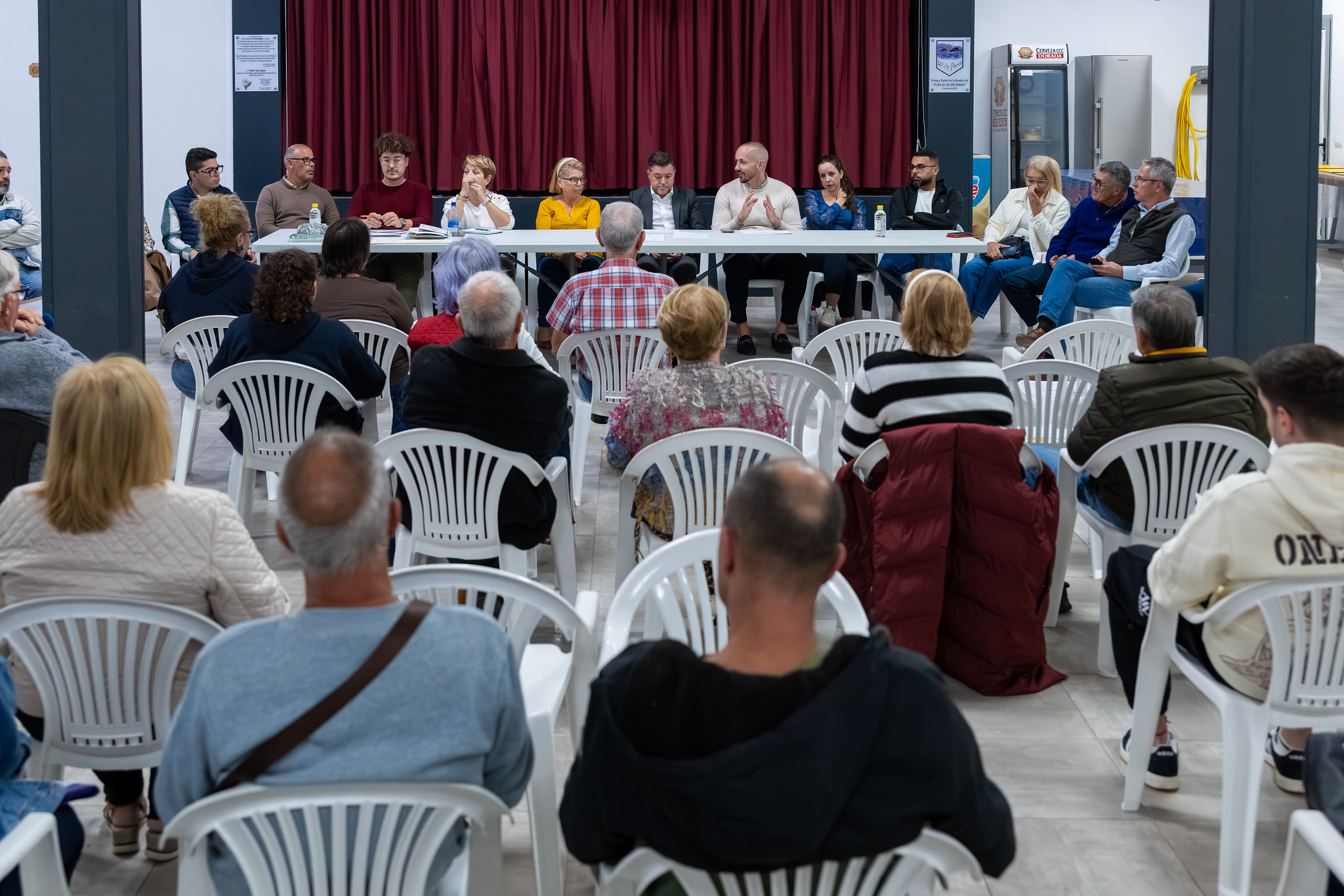 El encuentro estuvo encabezado por el alcalde de la ciudad, Teodoro Sosa Monzón; y el primer teniente de alcalde, Julio Mateo Castillo, quienes estuvieron acompañados de los demás miembros del Consistorio, para recoger de primera mano las demandas de los vecinos. Entre otros temas, se trataron las mejoras en infraestructuras viarias, como la finalización de aceras y reparación de socavones, la modernización de servicios básicos, con la reciente instalación municipal de fibra óptica y el próximo soterramiento del tendido eléctrico por parte de Endesa, y la rehabilitación de equipamientos públicos importantes, como los baños de la playa y la piscina el barrio, cuyo vaciado y acondicionamiento fueron comprometidos de forma inmediata por el alcalde, Teodoro Sosa.