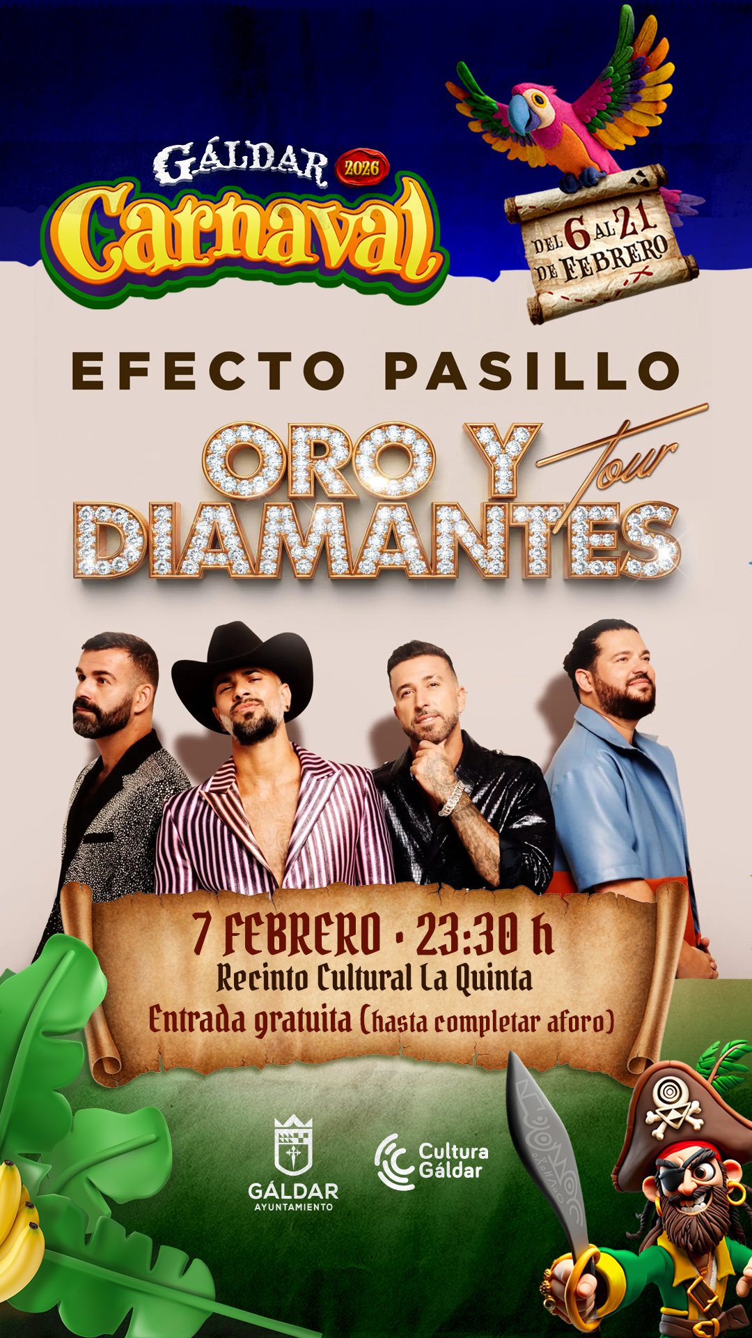 - La banda canaria llega con su gira Oro y Diamantes Tour el próximo 7 de febrero al Recinto Cultural La Quinta tras la Gala Drag Queen 2026 con entrada gratuita