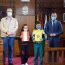 El alcalde de Gáldar, Teodoro Sosa, junto al concejal de Cultura y Fiestas, Julio Mateo, el cura párroco de la Iglesia de Santiago, Manuel Reyes,…